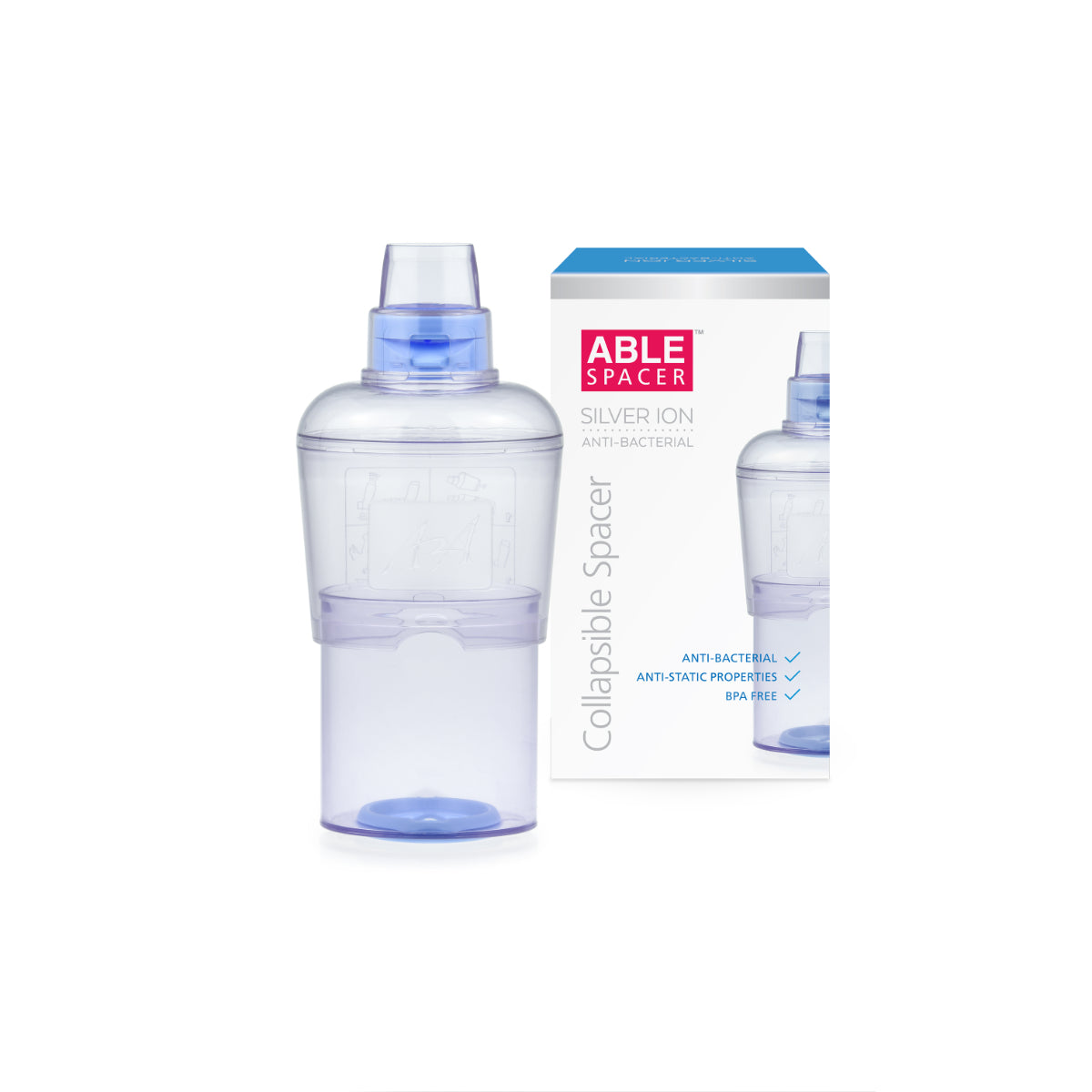 ABLE Health's Collapsible Spacer is embedded with silver ion to protect against 99% of all harmful bacteria (demonstrated by ISO 22196 tests). Common plastic spacers...
