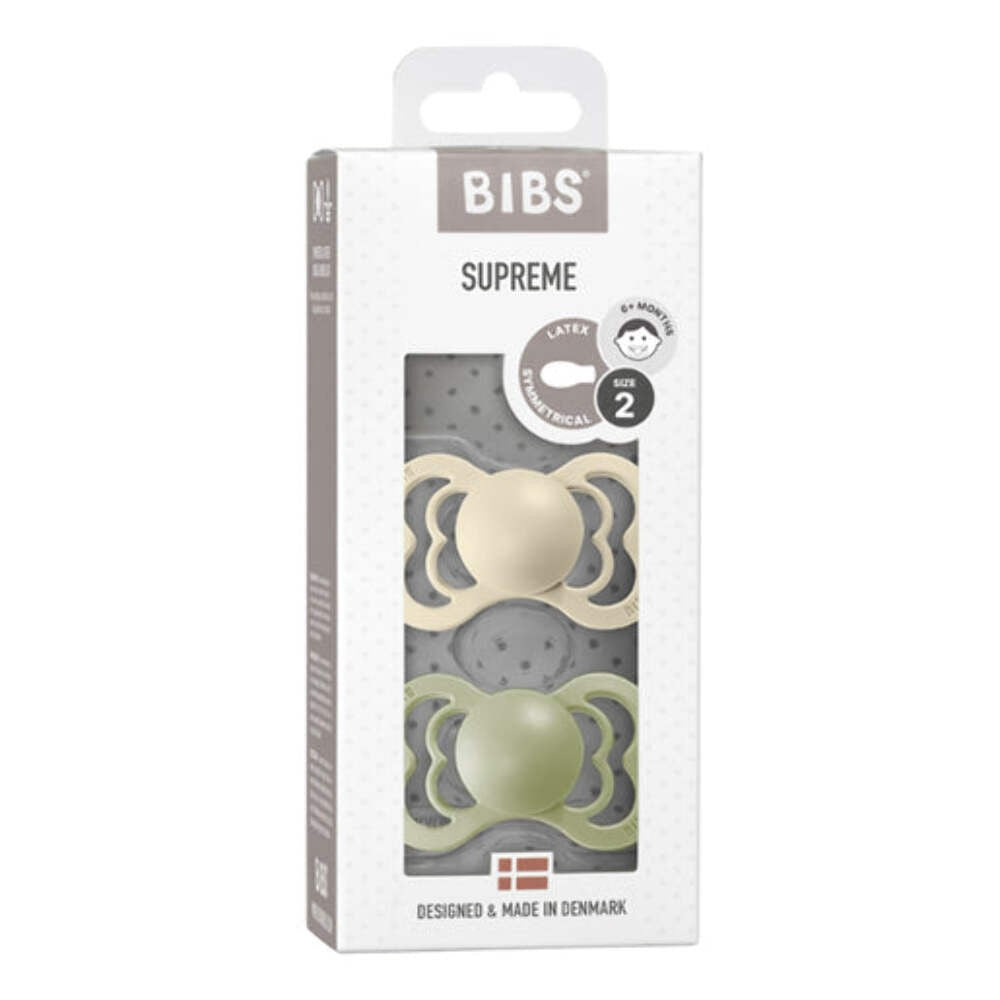 The BIBS Supreme pacifier is a premium Danish-designed soother featuring a symmetrical, flat, drop-shaped nipple that promotes correct jaw and tongue placement. Its elegant, lightweight...