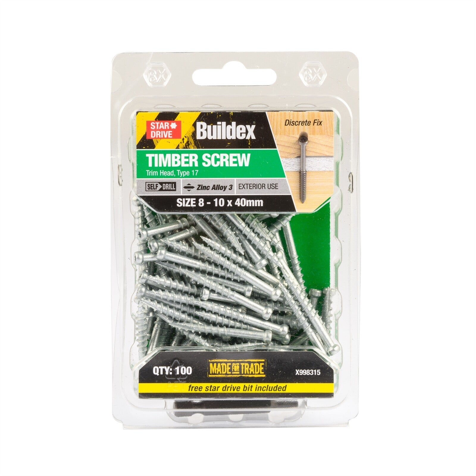 Buildex Timber Screws Trim Head Zinc 8 to 10 x 40mm 100 Pack